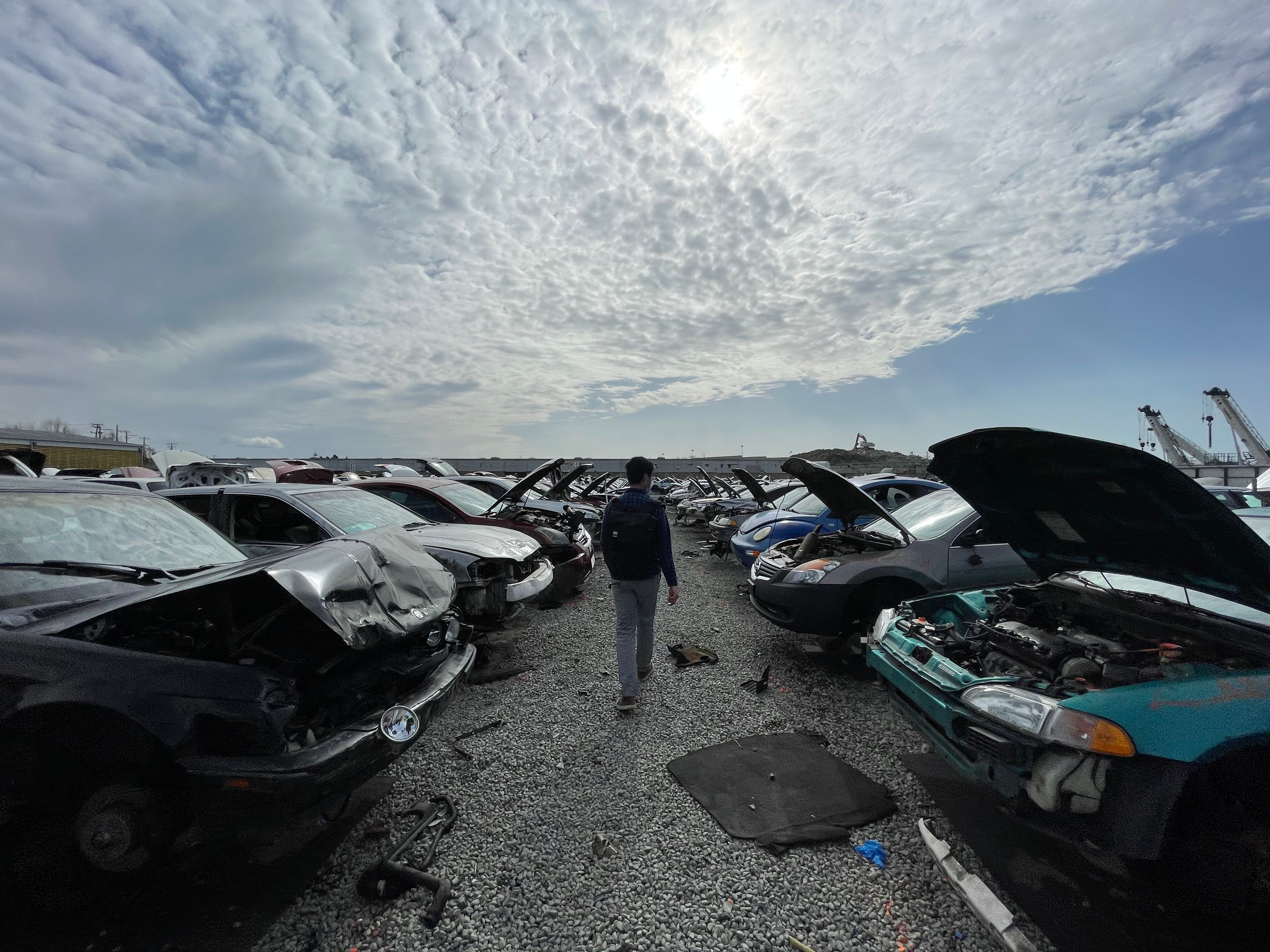 I was inspired by Kyle Wiens’s and Laura Kampf’s work with scrap material, so my housemate and I visited a junkyard to scavenge some ICE parts. I wonder what EV junkyards will be like—they are inherently more solid state than ICE and will have more challenges with interoperability.