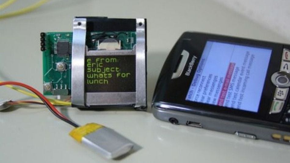 And I looked around at other smart watches. I mean, there weren't really smartwatches—I think Sony Ericsson made an analog watch that had a 10 character alphanumeric display? And it was like 350 bucks. And I said, well, I don't have 350 bucks—so I decided to make one instead.