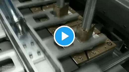 Gotta love a high-speed, high-precision, specialized line like this. I had always assumed these were produced as rounds and cut into slices, but this makes more sense.